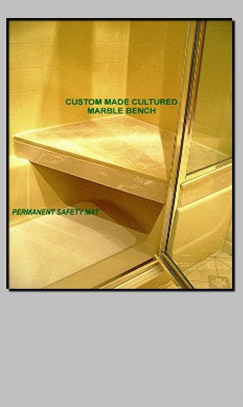 Custom Built Cultured Marble Shower Seat.